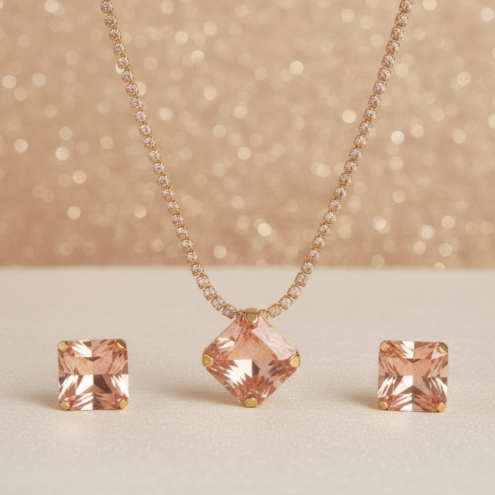 Tyaara Necklace Anti-Tarnish Multi Crystal Beads Choker Set With Earrings